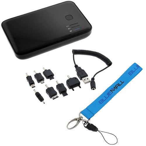 EVOPower Black 2 USB Port Compact External Portable Rechargeable Emergency Backup Battery Charger (5000mAh) - Includes USB Charging Cable +Tips (Free BlueMall Wrist Strap) for Samsung Eternity II SGH-A597 / Epic 4G / Fascinate SCH-i500 / Intercept M910 / Captivate SGH-i897 / Acclaim SCH-R880 / Vibrant SGH-t959 / Gravity T SGH-t669 / Gravity 3 SGH-t479 / Smiley SGH-t359 / Galaxy S 4G Prevail / Infuse /Sidekick 4G/ Droid Charge / Galaxy S 2 II /Epic Touch 4G / T989 / Galaxy Ace / Features